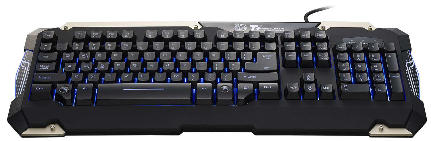 El teclado gamer COMMANDER posee un diseño que cuenta con detalles de esquinas metálicas que simbolizan el espíritu poderoso de un verdadero líder. Posee una estética con iluminación azul que se destaca, además de contar con teclas Tt Type II Plunger Switch que poseen el mismo diseño que las teclas mecánicas, lo que le brinda al usuario un maravilloso sentir al tacto en cada pulsación de tecla a la vez que da una respuesta similar a la de las teclas mecánicas que sin dudas mejorará el desempeño del usuario por la rapidez de respuesta nunca antes experimentada.